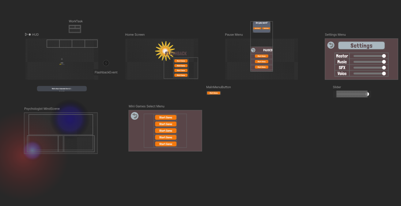 The UI was developed for a game called Flashback, a university project that ran from October to December. In the game, players experience a narrative where they recall events from the past and relive them through engaging minigames. My role focused on designing and implementing an interactive and dynamic user interface, ensuring it enhanced the game's storytelling and gameplay.